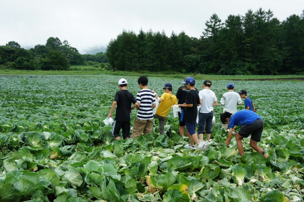 午前中に嬬恋キャベツの収穫体験とブルーベリーの収穫体験をおこないました