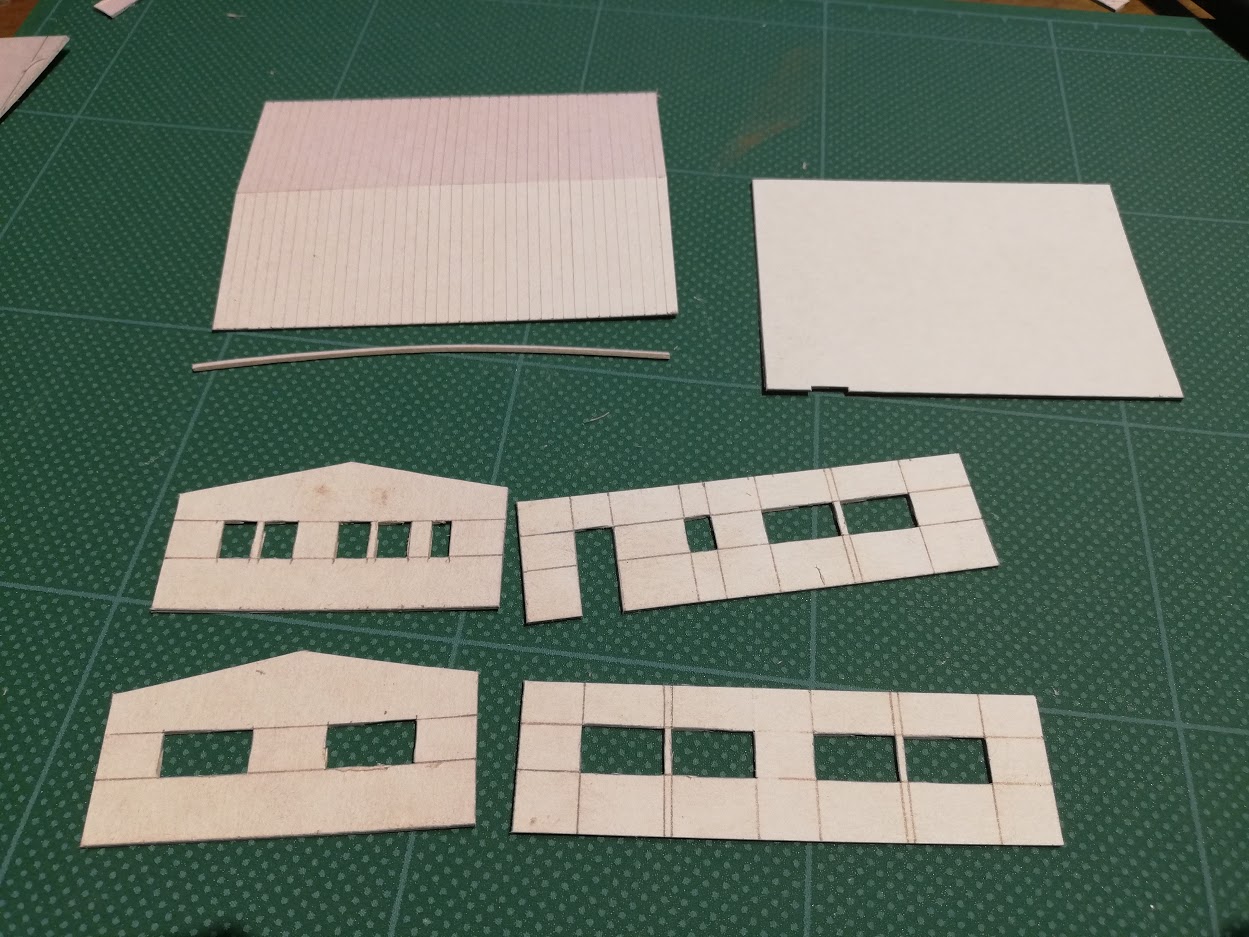 鉄道班の中学生向けに、Nゲージのジオラマの建物の模型の製作の講座を開いています。終業式の日に資材を配り、まずはカッターで紙を正確に切ることから始め、LINEやFacebookを使って先輩にアドバイスをもらいながら作っています。
