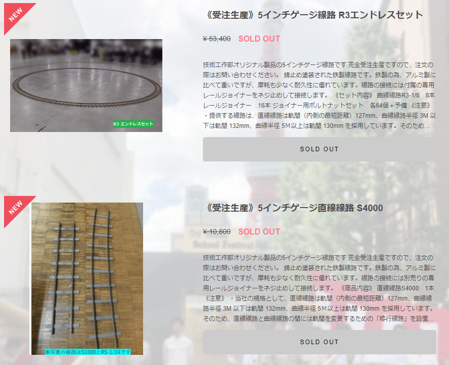 2020年9月より、正式に技術工作部ショップより、線路の一般販売を開始しました。ラインナップは今後増やしていくのでご期待ください。