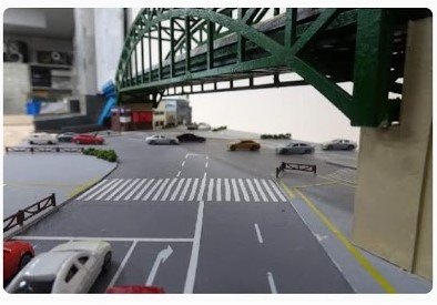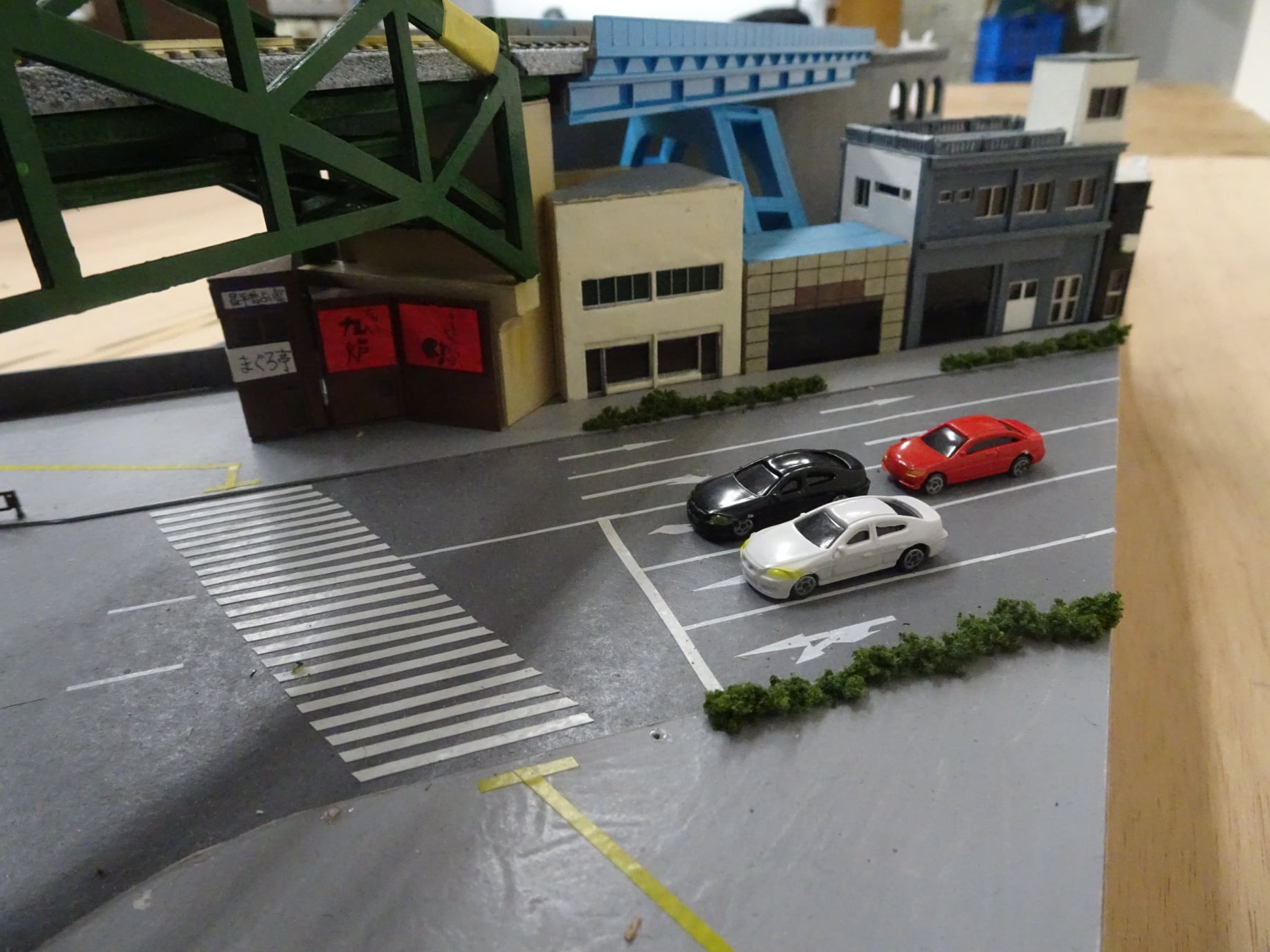 二点目に道路をつくることが大変でした。道路のパーツは小さく、また数もあるので作るときに神経を使いました。道路には横断歩道だけでなく黄色い点字ブロックやガードレール、街路樹、生け垣なども作りました。ボードを見るときは細かいところまで見ていただきたいです。