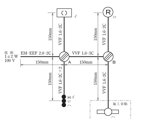 試験では与えられた問題をもとにまず自分で複線図を書き、ケーブルを指定寸法ごとに切り分け、各器具とケーブルを接続し、ケーブル同士を結線させたら完成です。