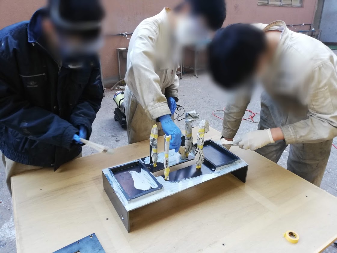 しかし、3月から8月のクラブ活動ができない期間に一部の部品を自宅で製作するなど工夫をし、現在では機関車炭水車ともに台枠の溶接作業を終え、線路上での走行試験を行う段取りを行っております。