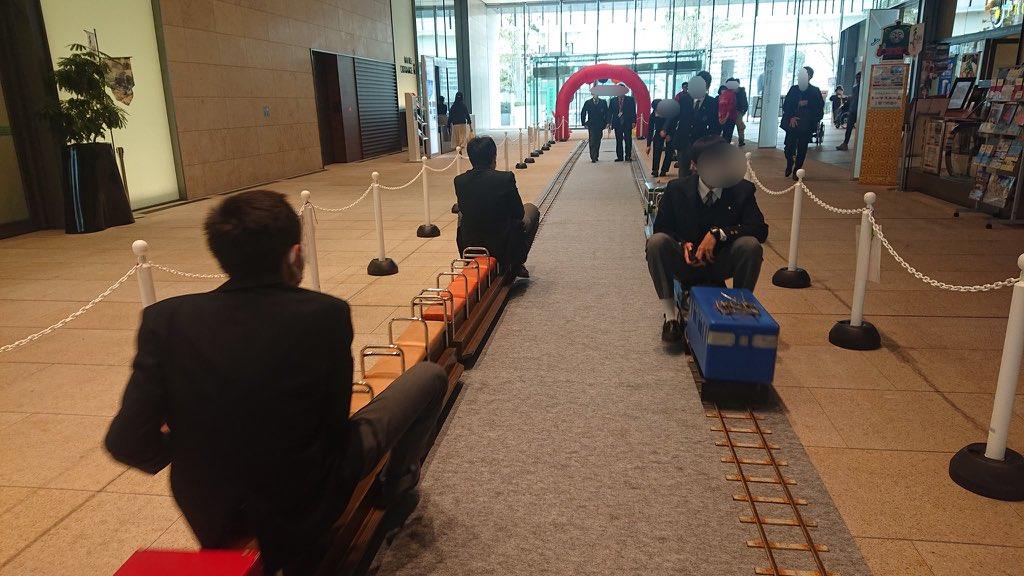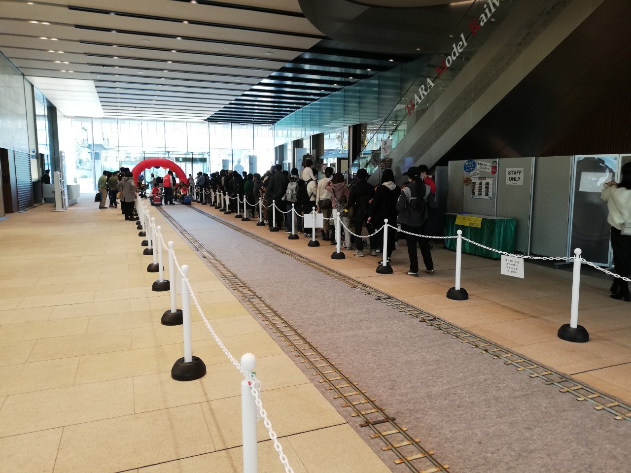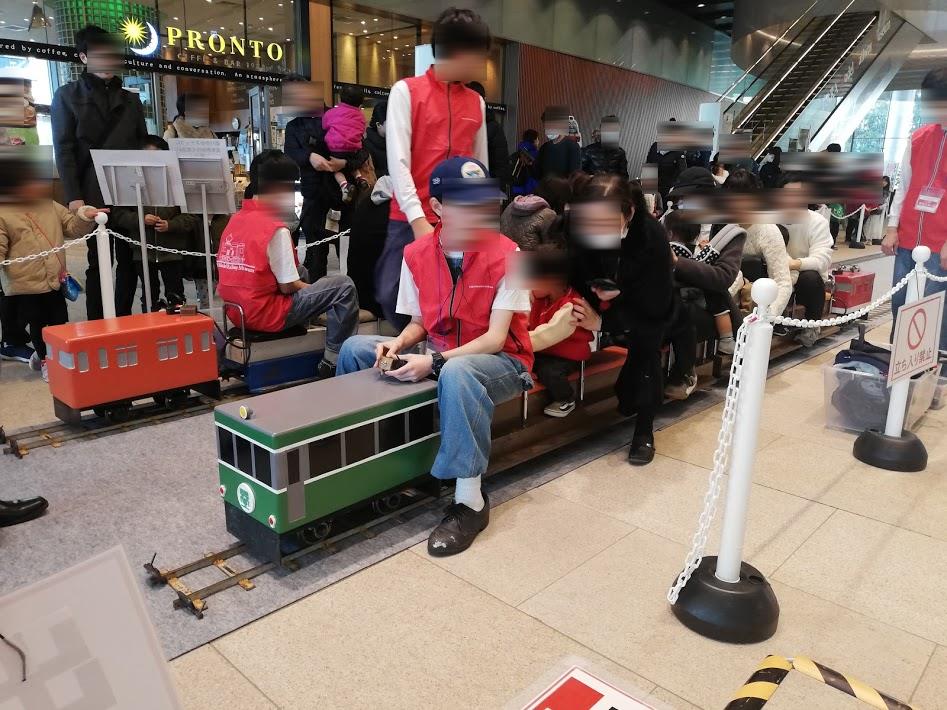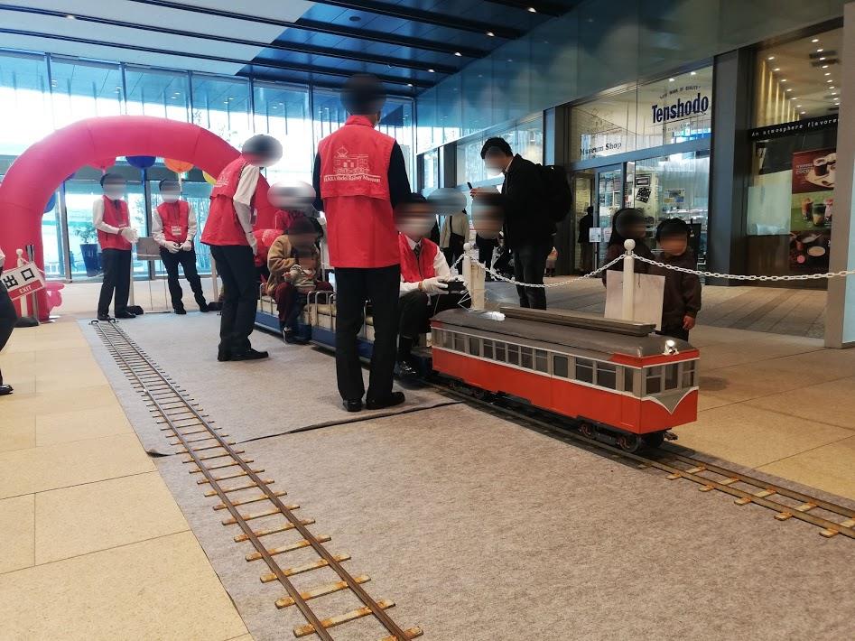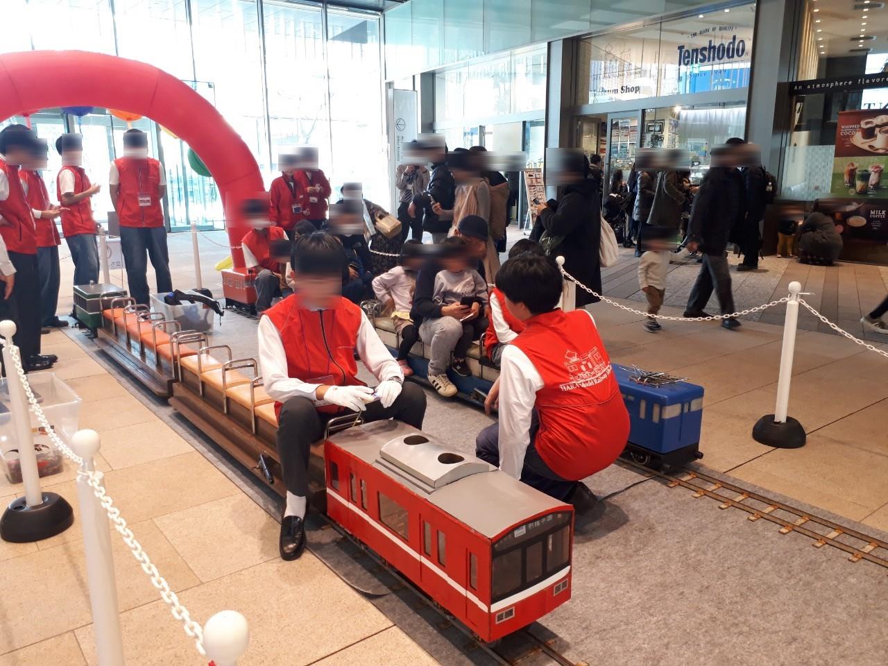 原鉄道模型博物館のある横浜三井ビルディング1階のコンコースに複線35mの線路を敷設し、往復運転を行いました。