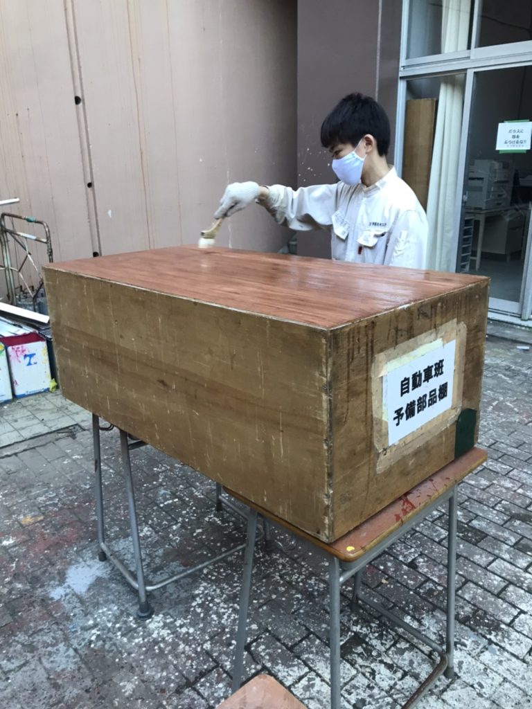 エコラン参加の為、自動車班の破損した引き出しキャスターを修理しました。 背板やレールの交換、ニス塗り等を行いました。