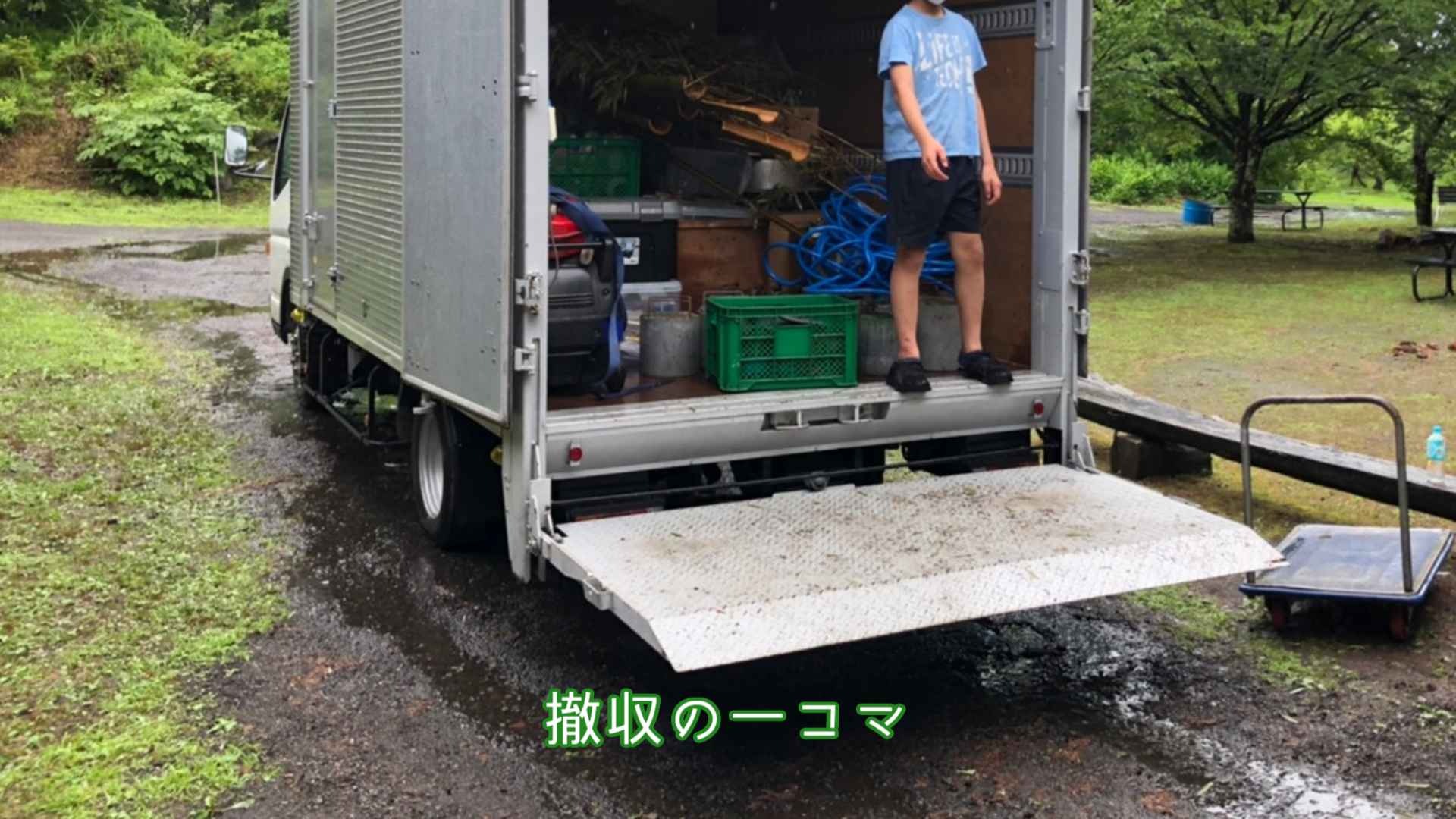 三日目はキャベツの収穫体験を予定していたが、雨が激しくて中止になってしまい、更に雨の中での撤収作業で慌ただしい一日となりました。
