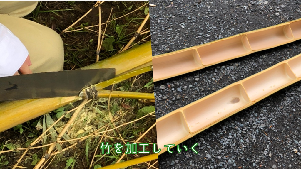 二日目は朝食にピザ窯で焼いたピザ・昼食に流しそうめん・夕食に焼肉を食べました。竹から流しそうめん台を作ったり、 また、5インチの運営に関する講習会をしました。 ピザを焼くのに時間がかかり、流しそうめん台を作るのにも時間がかかったりとスケジュールが乱れましたが、部員同士楽しみました。