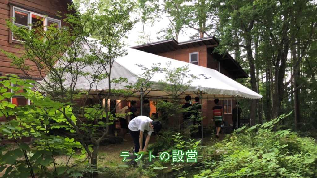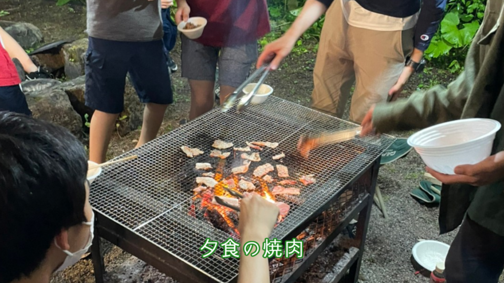 一日目は百年小屋に到着後、テントを設営したりトラックで運んだ荷物を下ろしたりと設営作業をしました。夕食は鉄板の上で焼きそばを焼いて食べました。他にもレクリエーションをしたりと楽しみました。5インチの運営に関する講習会をしました。