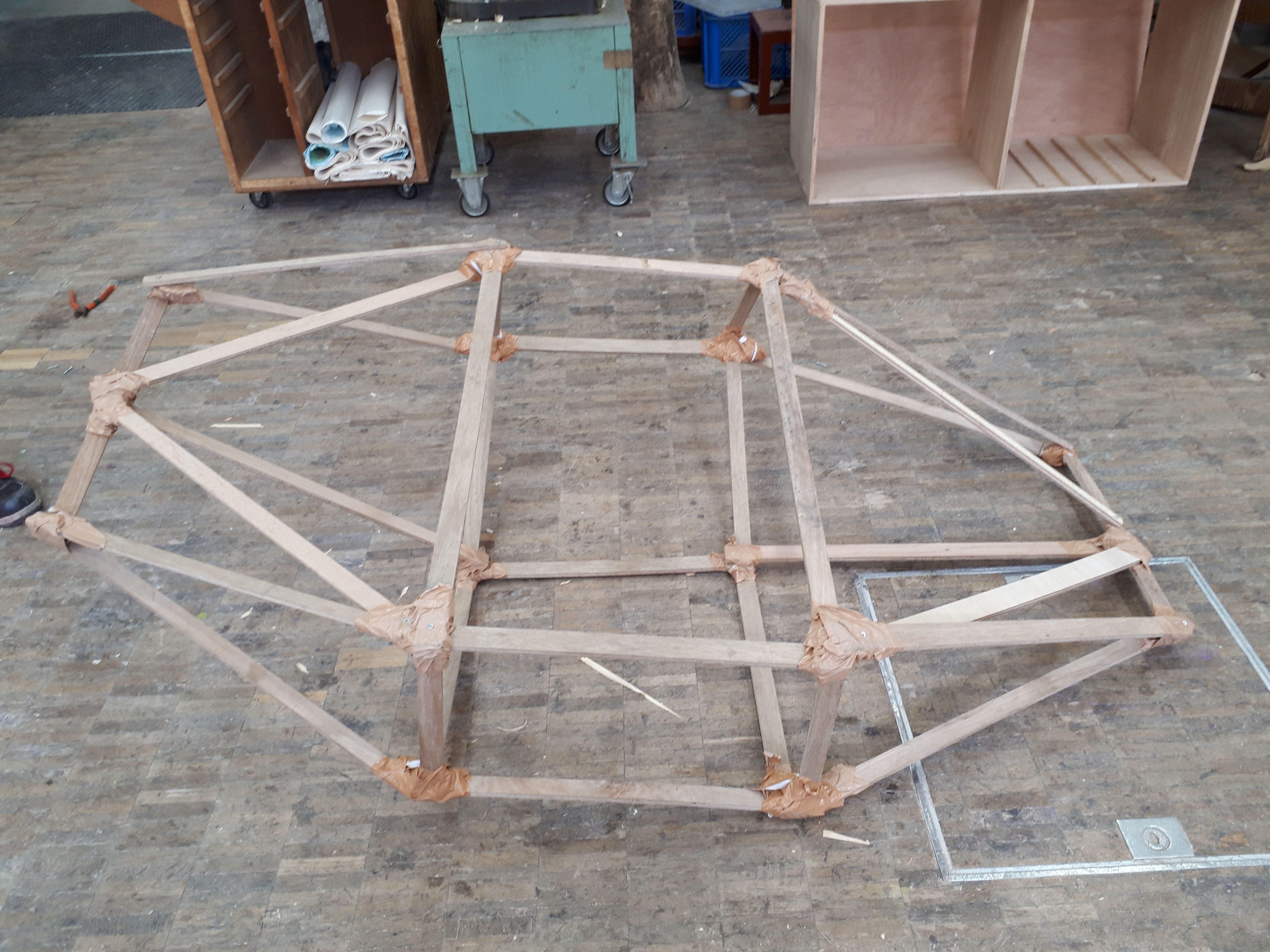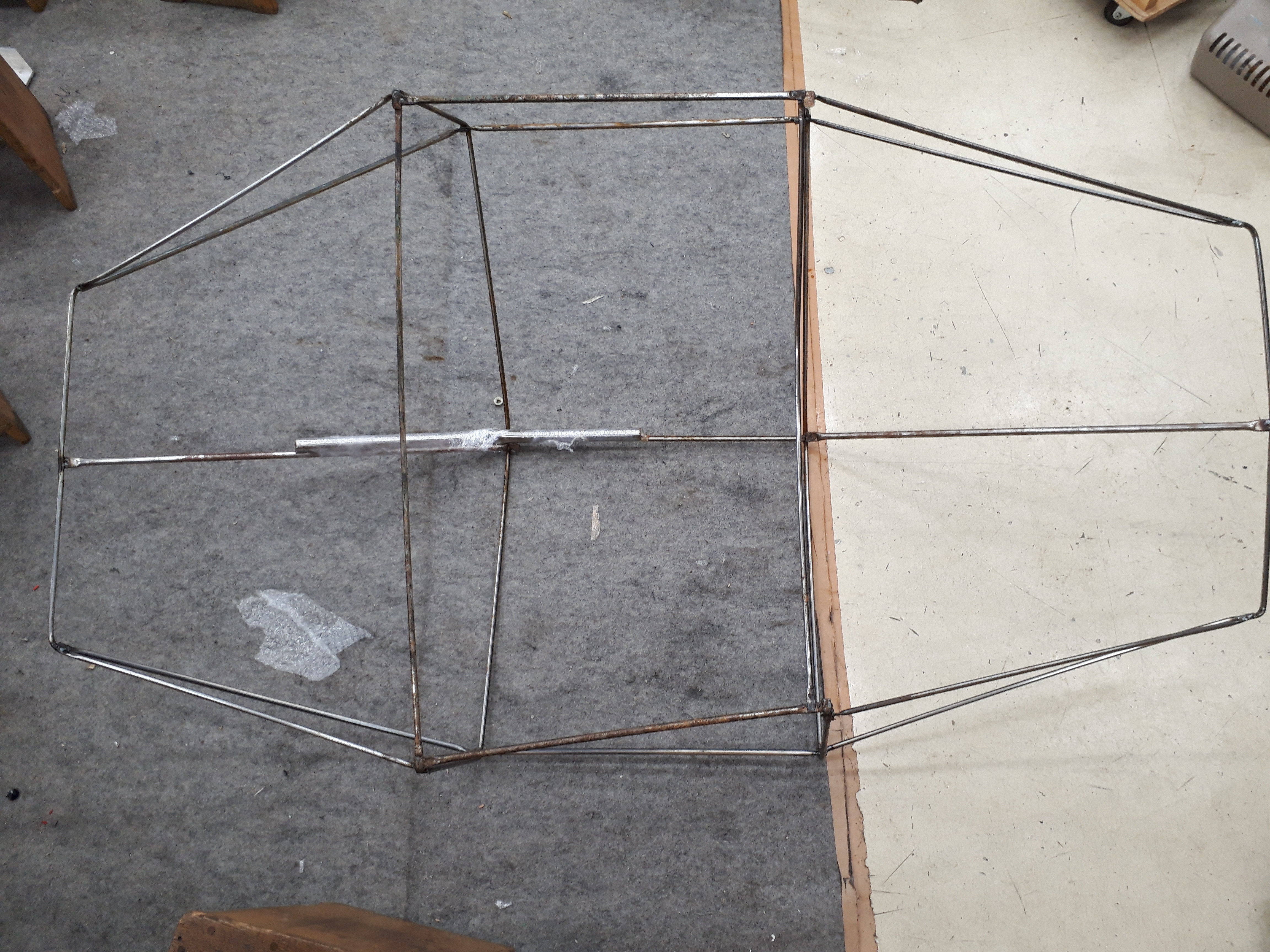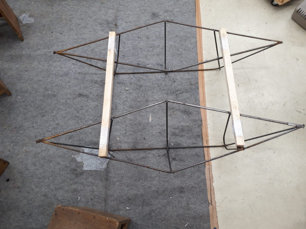 木材で形状、サイズを確認したら鉄パイプでの製作に移ります。