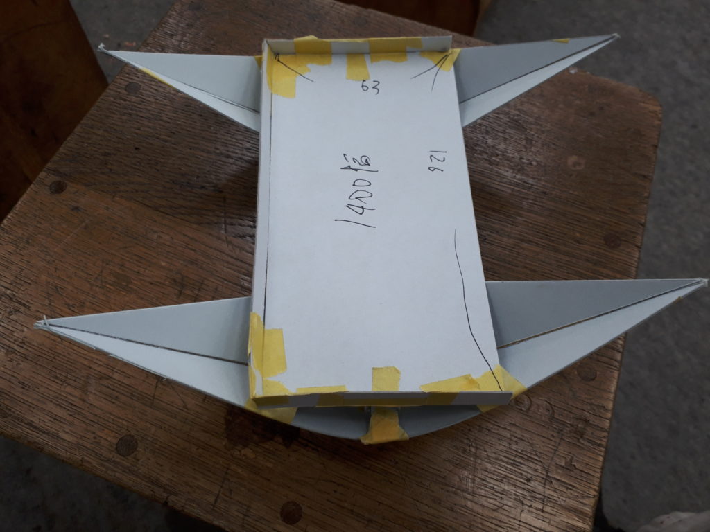 2種類の船のモデルとなるものを厚紙で製作しました。一つは双胴船となっています。
