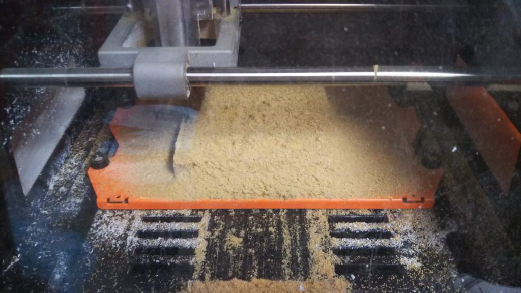 RolandのSRM-20にて切削していきます。 今回使用した素材はMDFです。