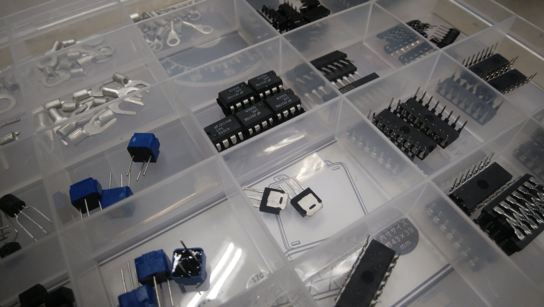 今日は部活に散らばっている細かい電子パーツを整理しました。